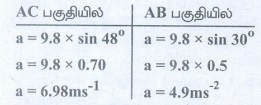 விடை : b) பாதை AC பாதையில் அதிக முடுக்கத்தைப் பெறும்