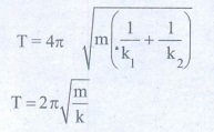 7. m நிறை கொண்ட பொருளானது புறக்கணித்தக்க நிறை கொண்ட கப்பியின் வழியாக K1, K2 சுருள் மாறிலி கொண்ட நல்லியல்பு சுருள்கள் மூலம் படத்தில் காட்டியுள்ளவாறு தொங்கவிடப்பட்டுள்ளது. அதன் செங்குத்து அலைவின் அலைவு நேரம்.