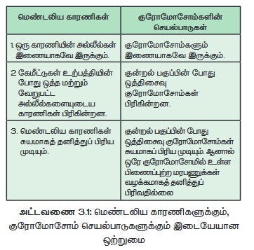 போது நிகழும் குரோமோசோம்களின் செயல்பாடுகளுக்கும், மெண்டலிய காரணிகளுக்கும் இடையே ஒற்றுமை