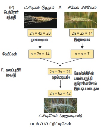 (i) நான்மடியம்: இருமடிய கோதுமை மற்றும் ரை தாவரங்களுக்கு இடையேயான கலப்பு