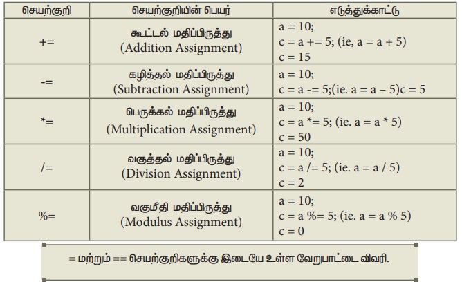 (4) மதிப்பிருத்து செயற்குறி (Assignment Operator):
