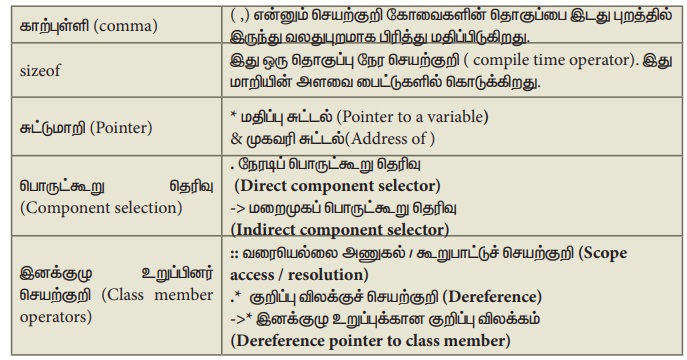 (ii) இரும செயற்குறிகள் (Binary Operators) - இரண்டு செயலேற்பியை மட்டும் ஏற்கும்