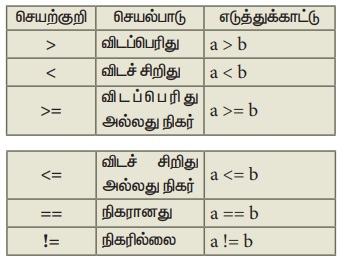 (2) ஒப்பீட்டுச் செயற்குறிகள் (Relational Operators)