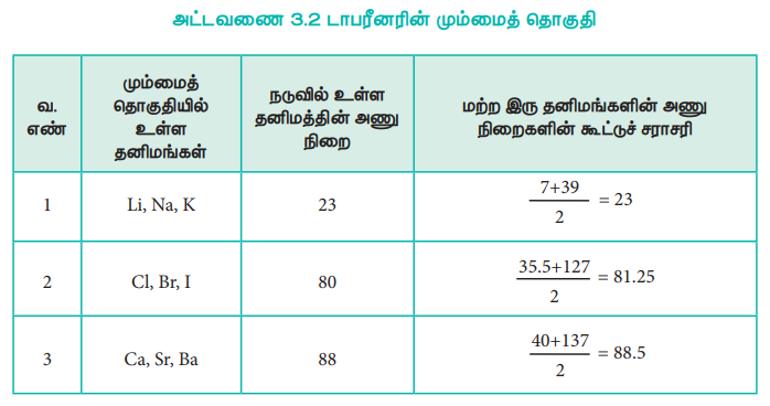 அட்டவணை 3.2 டாபரீனரின் மும்மைத் தொகுதி