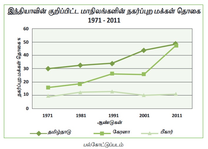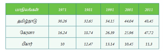 அட்டவணை 12.2 இந்தியாவின் சில குறிப்பிட்ட மாநிலங்களின் நகர்ப்புற மக்கள் தொகை% (1971- 2011)