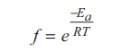 வினைநிகழ காரணமாக அமையும் மோதல்களின் விகிதம் (f) ஆனது பின்வரும் சமன்பாட்டால் ஏற்படுகிறது.