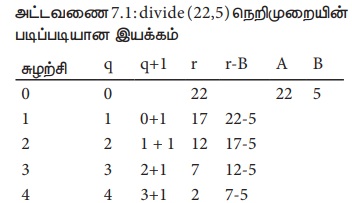 அட்டவணை 7.1: divide (22,5) நெறிமுறையின் படிப்படியான இயக்கம்