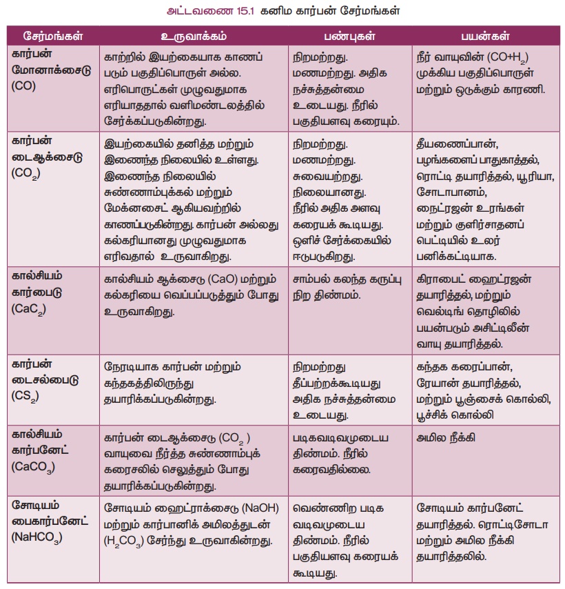 அட்டவணை 15.1 கனிம கார்பன் சேர்மங்கள்