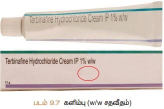அதேபோல் களிம்புகள் (Ointment), அமிலநீக்கிகள், சோப்புகள் போன்றவற்றில் உள்ள கரைசல்களின் செறிவுகள் w/w என்று குறிப்பிடப்படுகிறது.