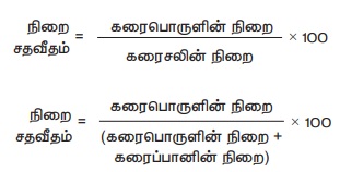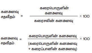 முறைகள் உள்ளன. நாம் இங்கு நிறை சதவீதம் மற்றும் கனஅளவு சதவீதம் ஆகியவற்றை
