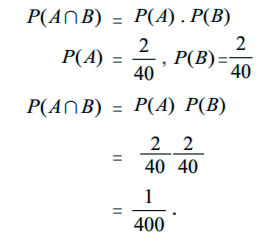 முதல் முறை எடுக்கும்போது மொத்தம் 40 அட்டைகளில் இரண்டு 18 அட்டைகள் இருக்கும். முதல் அட்டை மீண்டும் வைக்காமல் இரண்டாம் முறை எடுக்கும்போது மொத்தம் 39 அட்டைகள் இருக்கும். எனவே முதலில் நடந்த நிகழ்ச்சி A ஆனது, பின் நடக்கும் நிகழ்ச்சி B-ன் நிகழ்தகவினைப் பாதிக்கின்றது. ஆதலால் A, B நிகழ்ச்சிகள் சார்பிலா நிகழ்ச்சிகள் அல்ல. அவை ஒன்றுக்கொன்று சார்ந்த நிகழ்ச்சிகளாகும்.