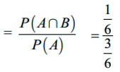 எனவே P(A) = 3/6 மற்றும் P(A∩B) = 1/6