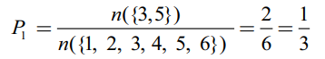 P1 = n({3,5}) / n({1,2,3,4,5,6}) = 2/6 = 1/3