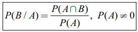 P(B/ A) = P(A∩B) / P(A), P(A) ≠ 0