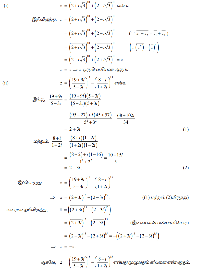 நிறுவுக (i) (2 + i√3)10 + (2 − i√3)10 ஒரு மெய் எண் மற்றும்