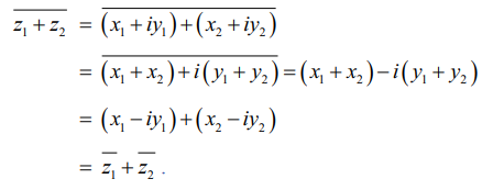 z1 = x1 + iy1, z2 = x2 + iy2, மற்றும் x1, x2, y1 மற்றும் y2 ∈ ℝ என்க.