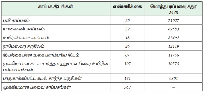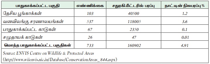 அட்டவணை 7.2 இந்தியாவில் பாதுகாக்கப்பட்ட பகுதிகள் (ஜனவரி 2017)