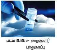 தீவிர குறைந்த வெப்பநிலையில் உயிர் பொருள்களின் ஏதேனும் ஒரு நொதியின் செயல்பாடு அல்லது வேதிய செயல்பாடுகள் முழுவதுமாக நின்றுவிடுகின்றன. இதன் விளைவாகப் பொருள்கள் உறக்க நிலையில் பதப்படுத்தப்படுகின்றன. பிறகு மற்ற பரிசோதனை பணிக்காக மெதுவாக அறை வெப்பநிலைக்குக் கொண்டு வரப்படுகின்றன. உறைகுளிர்பாதுகாப்பு செயல்முறைக்கு முன்பாகத் தாவரப் பொருள் தயாரித்தல் பாதுகாப்பு காரணிகளான டை மெத்தில் சல்ஃபாக்சைடு, கிளிசரால் அல்லது சுக்ரோஸ் ஆகியன சேர்க்கப்படுகின்றன. இத்தகைய பாதுகாப்பு காரணிகள் உறைகுளிர்பாதுகாப்பு செயல் பாதுகாப்பான்கள் என்று அழைக்கப்படுகின்றன. இந்த பாதுகாப்பு காரணிகள் தீவிர குளிர் விளைவுகளில் இருந்து செல்கள் அல்லது திசுக்களை பாதுகாக்கின்றன.