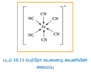 எடுத்துக்காட்டாக, பெர்ரோசயனைடு [Fe(CN)6]4- அயனியில் ஒவ்வொரு சயனைடு அயனியும் (CN-) ஒரு எலக்ட்ரான் இரட்டையினை இரும்பு (II) ற்கு வழங்கி (Fe2+) உடன் ஈதல் சகப்பிணைப்பினை ஏற்படுத்துகின்றன. மேலும் இந்த எலக்ட்ரான்கள் Fe2+ மற்றும் CN- அயனிகளுக்கிடையே சமமாக பங்கிடப் படுகின்றன.