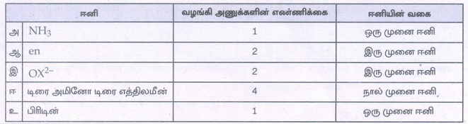 16. பின்வரும் ஈனிகளை அவற்றில் உள்ள வழங்கி அணுக்களின் எண்ணிக்கையின் அடிப்படையில் வகைப்படுத்துக.
