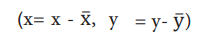 * படி-2 X மற்றும் Y மதிப்புக்கள் அதனதன் சராசரி மதிப்பிலிருந்து உள்ள விலக்கத்தைக் கணக்கிடவும்