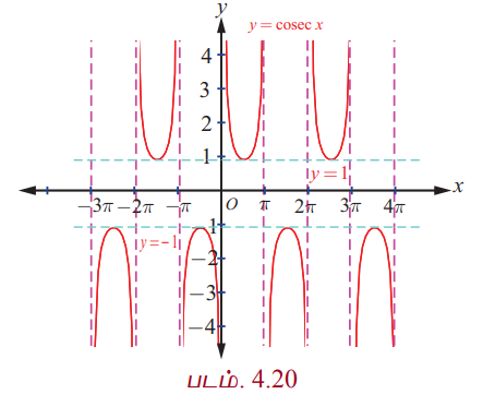y = cosec x −ன் முழு வரைபடம் ஆனது படம் 4.20−ல் காண்பிக்கப்பட்டுள்ளது.