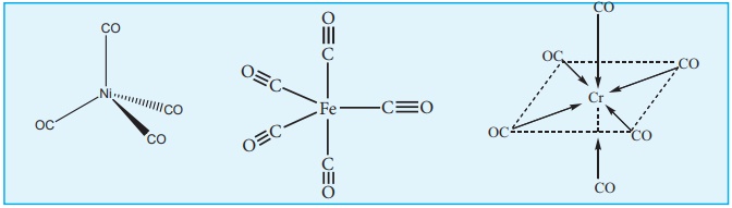 (எ.கா) (Ni(CO)4], [Fe(CO)5] மற்றும் [Cr(CO)6]