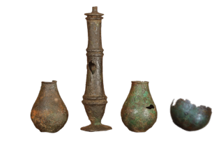 சிறிய, பெரிய அளவிலான உயரளவு ஈயம்கொண்ட பல வடிவிலான வெண்கலப் பாத்திரங்கள் கண்டெடுக்கப்பட்டுள்ளன.