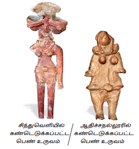 சிந்துவெளி அகழ்வில் கிடைத்துள்ளதைப் போன்ற சுடுமண் பெண்ணுருவங்கள் கிடைத்துள்ளன.