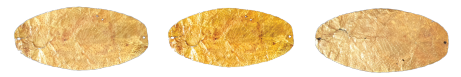 நீள்வட்ட வடிவிலான பொன்தகட்டால் ஆன நெற்றிப்பட்டங்கள் சிறிய அளவில் பொறிக்கப்பட்ட முக்கோண வடிவ அணிவேலைப்பாடுகளுடனும் நெற்றியில் கயிற்றால் இணைத்துக் கட்டுவதற்காக இரு முனைகளிலும் இடப்பட்ட துளைகளுடனும் கண்டெடுக்கப்பட்டுள்ளன.