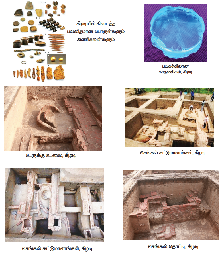 கழிவுநீர் வழிகள், தமிழ் பிராமி எழுத்துகள் கொண்ட மட்கல ஓடுகள், செம்மணிக்கற்களாலான அணிகள், முத்து, இரும்பு பொருள்கள், விளையாட்டுப்பொருள்கள், கண்ணுக்கு மை தீட்டும் செப்புக் கம்பி போன்றவை கண்டறியப்பட்டுள்ளன. இன்னும் அகழாய்வுகளை மேற்கொண்டால்,