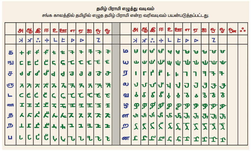 சங்க காலத்தில் தமிழில் எழுத தமிழ் பிராமி என்ற வரிவடிவம் பயன்படுத்தப்பட்டது.