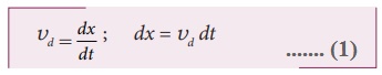• dt எனும் சிறிய நேர இடைவெளியில் எலக்ட்ரான்கள் dx தொலைவுக்கு நகர்கிறது எனில்