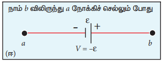 • மூடிய சுற்றில் (closed loop) நாம் செல்லும் திசைக்கு எதிர்த்திசையில் மின்னோட்டம் சென்றால், அம்மின்னோட்டம் மற்றும் அப்பாதையில் உள்ள மின்தடை ஆகியவற்றின் பெருக்கற்பலன் மதிப்பு எதிர்க்குறி மதிப்பாகவும் எடுத்துக் கொள்ளப்படும்.