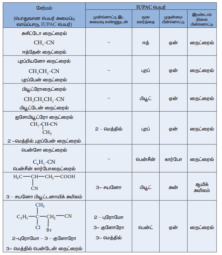 அட்டவணை : சயனைடுகளுக்கு பெயரிடுதல்