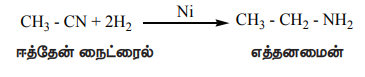LiAIH4 அல்லது Ni/H2 கொண்டு ஆல்கைல் சயனைடுகளை ஒடுக்கமடையச் செய்யும் போது ஓரிணைய அமீன்கள் உருவாகின்றன.