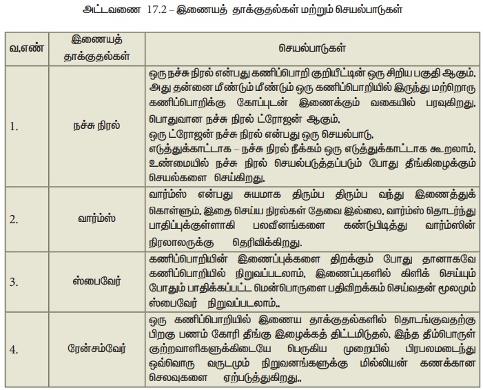 அட்டவணை 17.2 - இணையத் தாக்குதல்கள் மற்றும் செயல்பாடுகள்