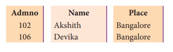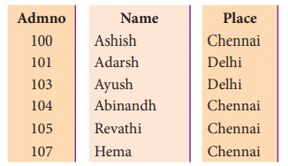 SELECT * DISTINCT place FROM student; என்ற கட்டளை பின்வரும் தரவை வெளிக்காட்டும்: