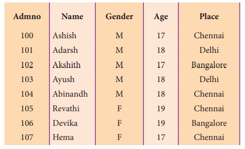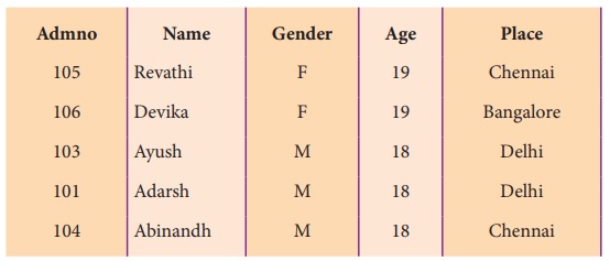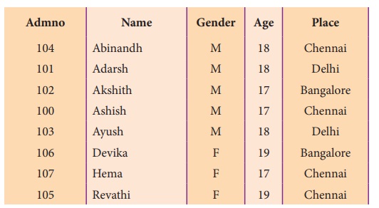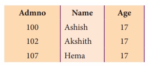 மாணவர் அட்டவணை பின்வரும் தரவைக் கொண்டிருந்தால்:
