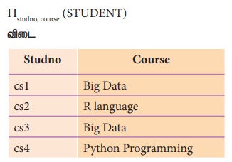 (iii) நிபந்தனைகளை திருப்திபடுத்தாத tuples களை Select வடிகட்டுகிறது.