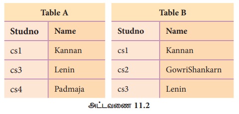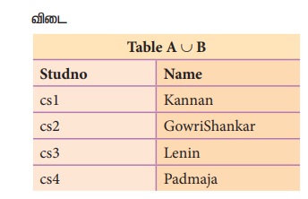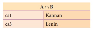 (i) இது A மற்றும் B அட்டவணைகளில் பொதுவாக உள்ள அனைத்து tuplesகளையும்