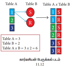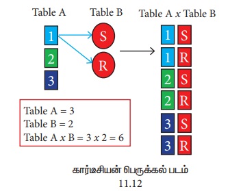 மற்றும் கார்டீசியன் பெருக்கல் போன்றவற்றை பொருத்தமான எடுத்துக்காட்டுடன் விளக்குக.