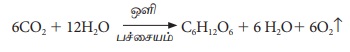 6CO2 + 12H2O ஒளி → பச்சையம் C6H12O6 + 6H2O + 6O2↑