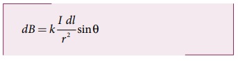 மின்னோட்டம் பாயும் கடத்தியின் நீளத்தின் சிறு கூறிலிருந்து r தொலைவில் உள்ள P புள்ளியில் படம் 3.30 உருவாகும் காந்தப்புலம்