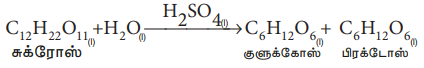 (1) கனிம அமிலத்தை வினைவேகமாற்றியாக கொண்டு நிகழும் கரும்பு சர்க்கரையின் நீராற்பகுப்பு வினை .
