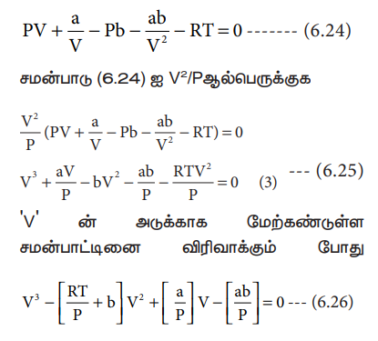 PV + (a / V) – Pb – (ab / V2) – RT = 0 ---------- (6.24)