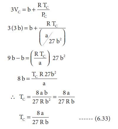 ∴ TC = 8ab / 27Rb2 = 8a / 27Rb