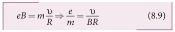 போது எலக்ட்ரான் கற்றையின் திசைவேகம் மற்றும் R என்பது எலக்ட்ரான் கற்றை மேற்கொள்ளும்
