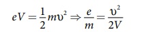 பிரதியிட, மின்னூட்ட எண்ணின் மதிப்பு e/m =1.7x1011Ckg-1