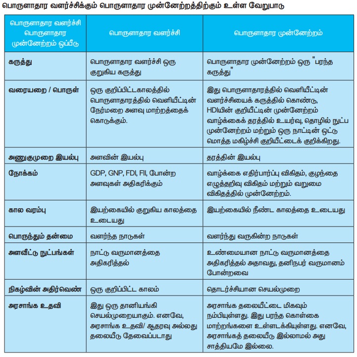 பொருளாதார வளர்ச்சிக்கும் பொருளாதார முன்னேற்றத்திற்கும்